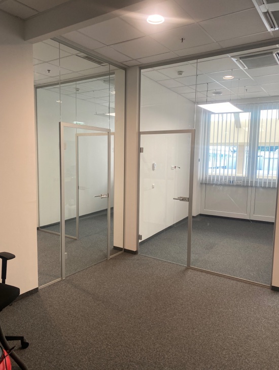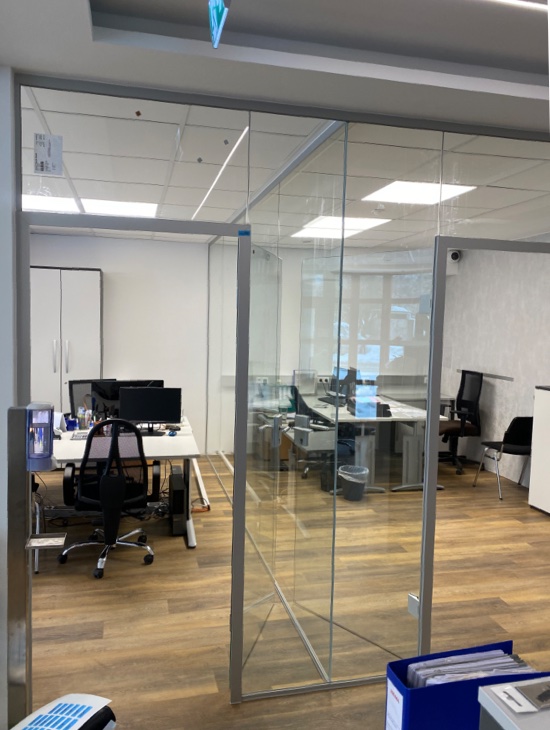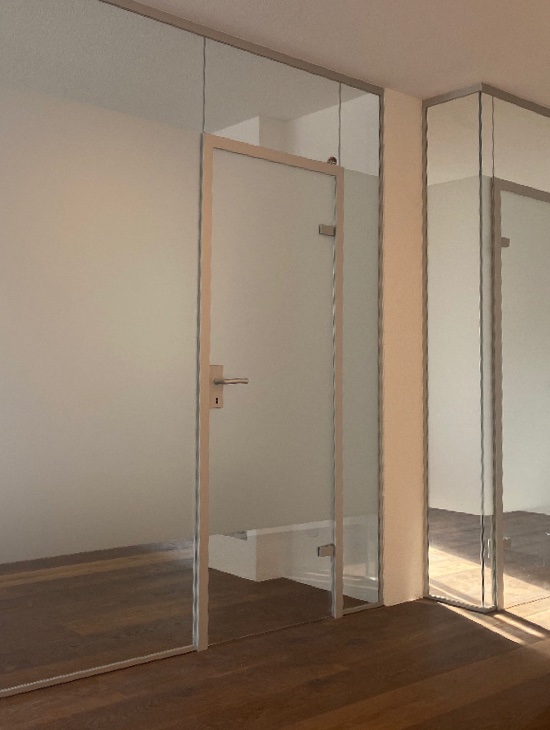 Ganzglasanlagen sind nahezu rahmenlose Konstruktionen aus Glas und Metall. Sie werden häufig als Raumtrenner verwendet. Sie strukturieren Räume, ohne die Verbindung zwischen ihnen aufzulösen. Der Innenraum wirkt großzügig und hell.